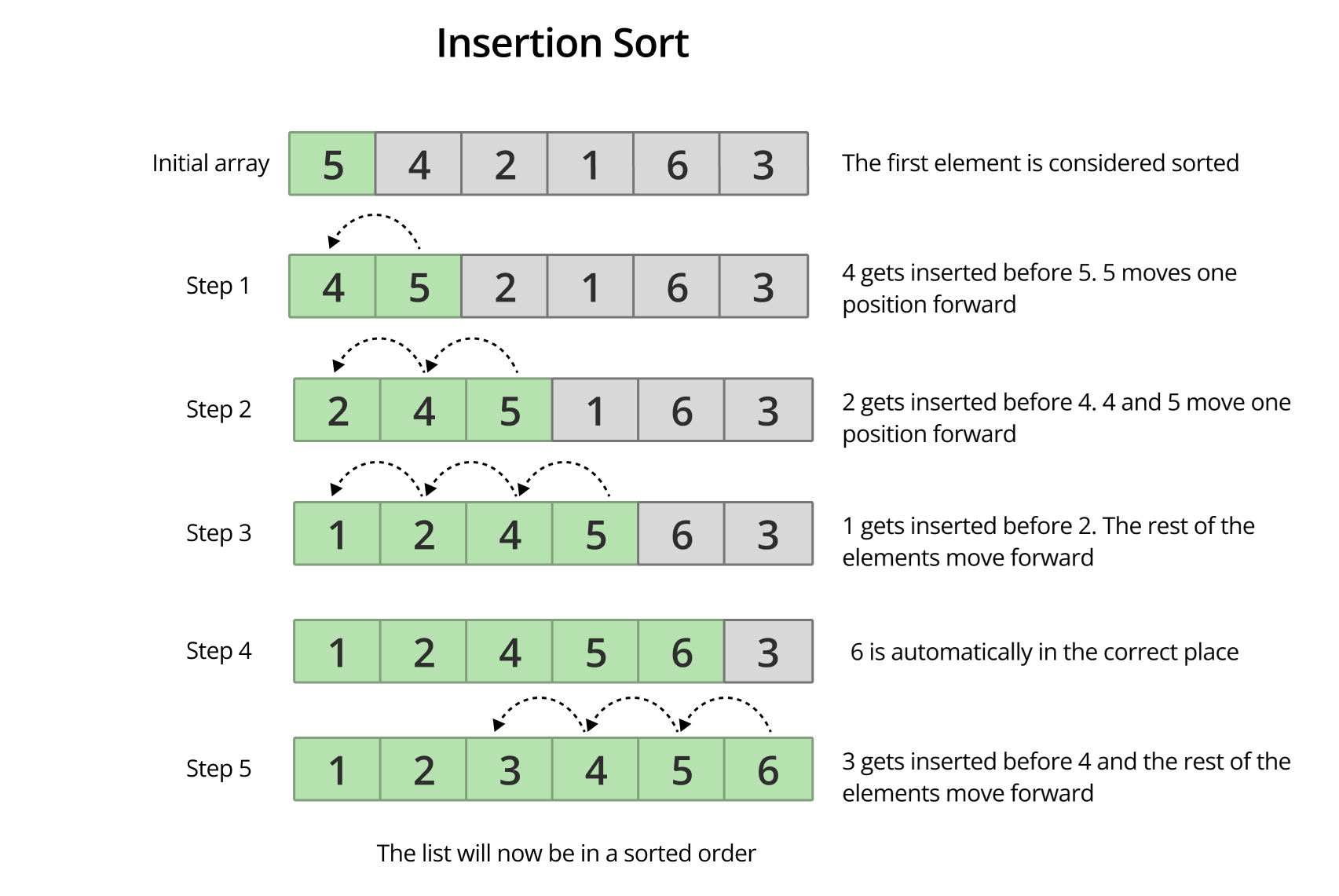 keyelement is less than the element at thekey-1index, swap them. - Keep swapping until there are no more elements to the left of
