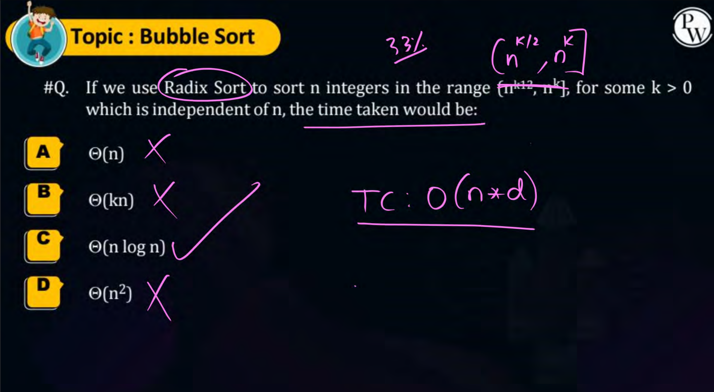 Sol - The time complexity of Radix Sort is where is the number of digits in the maximum element of the array.