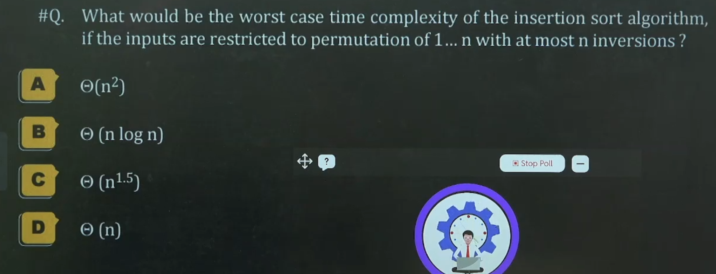- If the input list is already pre-sorted, then it takes time of where - = no. of elements = no. of inversions Check Question 2 for this.
