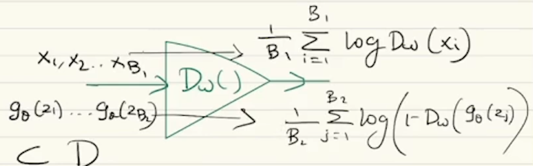 - Pass through the discriminator to get . Then using these calculate the first term of the loss function -