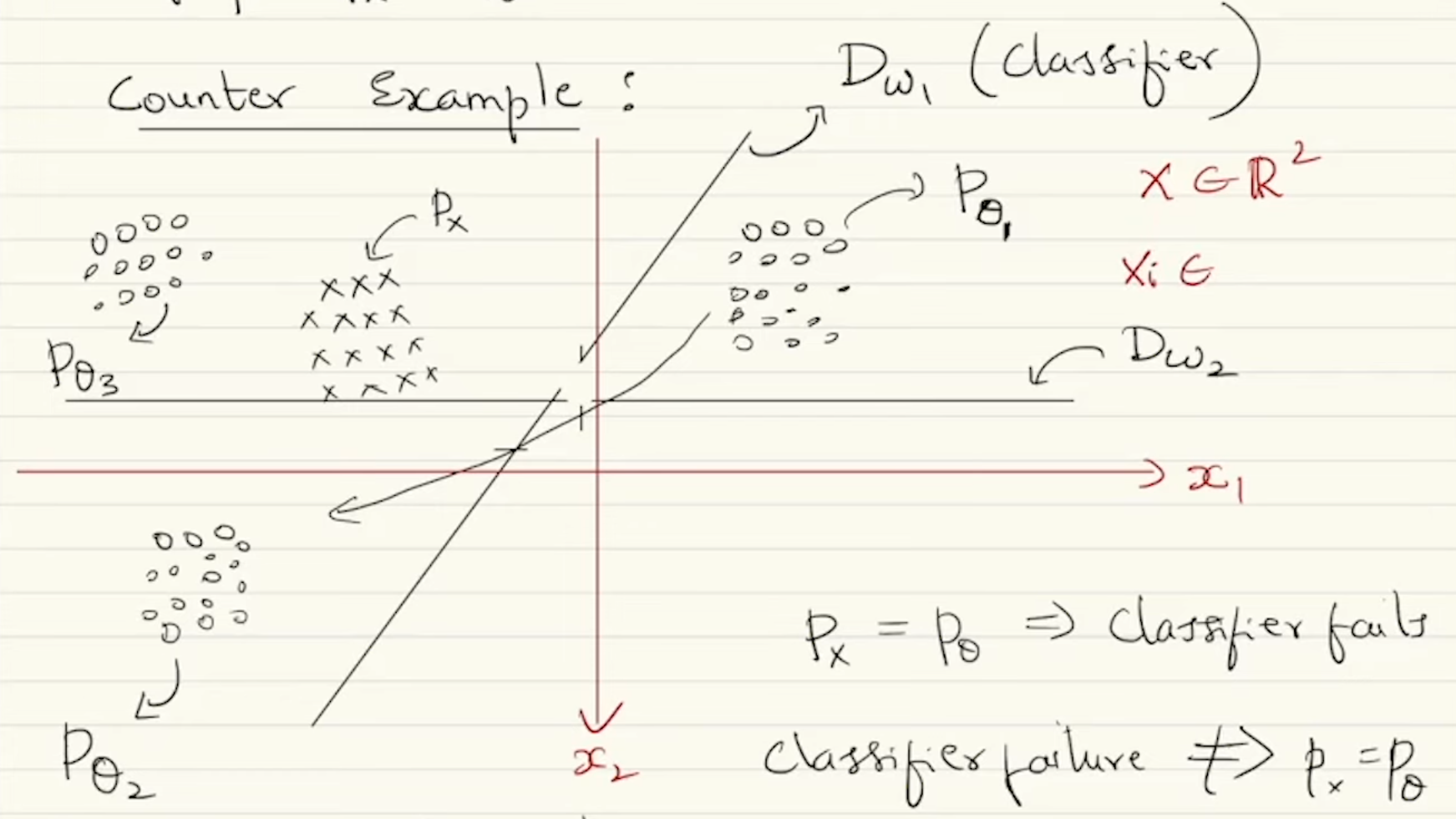 - However, the failure of some weak or arbitrary classifier doesn’t imply that and are close to each other. So instead of just tweaking , we also need to change the binary classifier . If all such different variations of the classifiers fail to distinguish the samples then we can confidently say that and are close to each other.