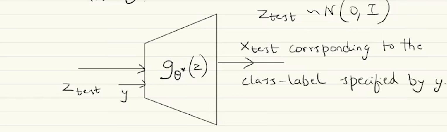 Suppose is the optimal generator network achieved via training. For any test input and class label , the output would be a corresponding to the class-label specified by .